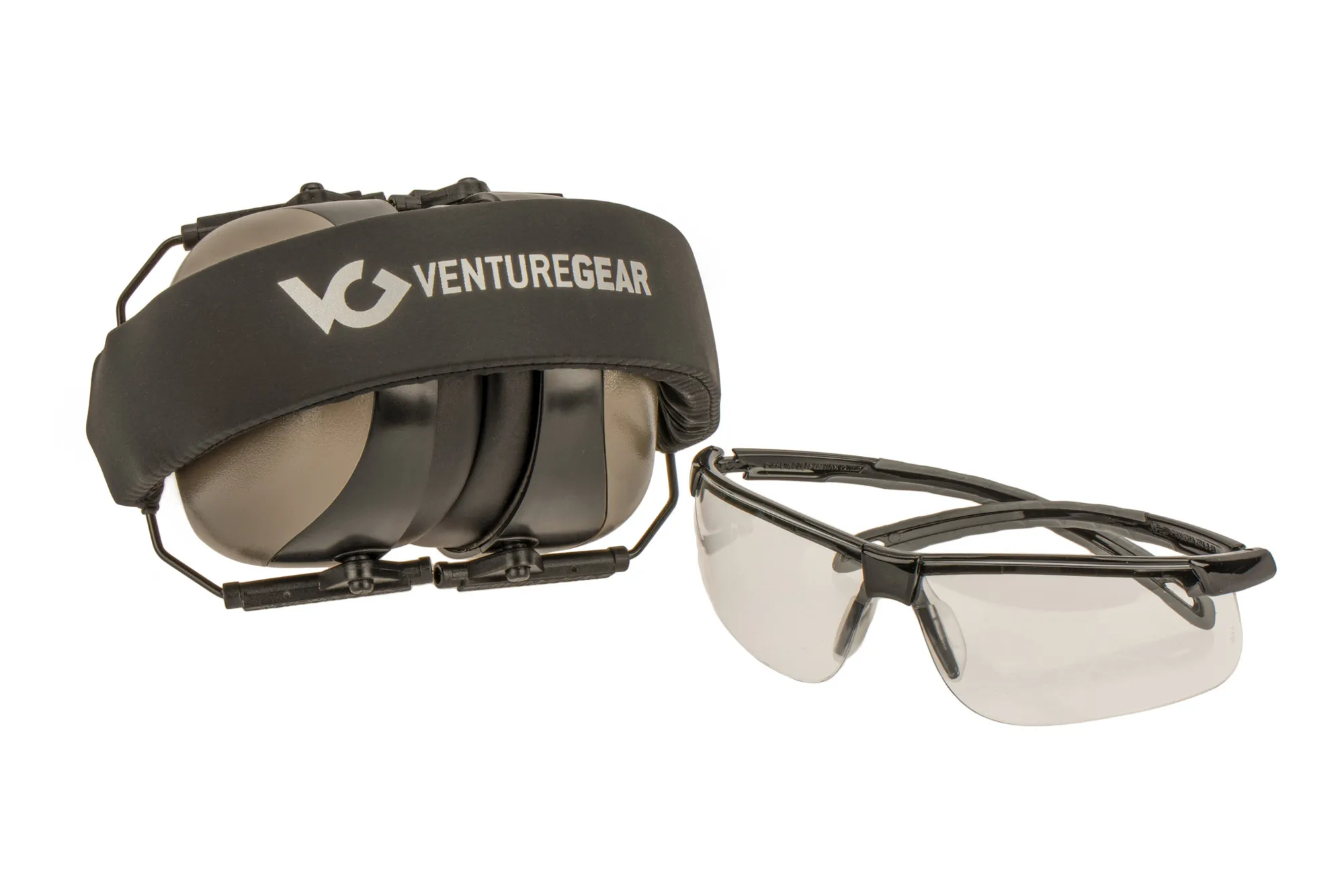 The Pyramex Venture Gear Ever-Lite Kit comes with Grey VG80 over ear hearing protection as well as wrap around protective glasses. The VG80 Series Hearing Protection offers 26 decibels of noise reduction and up to 35 decibels when used with disposable foam in ear plugs. Features soft foam ear cups and a comfortable headband that can easily be adjusted for different head sizes and folds into a small package for storage. The low profile design makes them more comfortable to wear. The safety glasses feature clear scratch resistant lenses that also provide 99% UV light reduction. These glasses feature a soft nosepiece and low profile frame arms that sit comfortably underneath the hearing protection. Get the essential safety gear in one pack from Pyramex with the Ever-Lite Kit.
