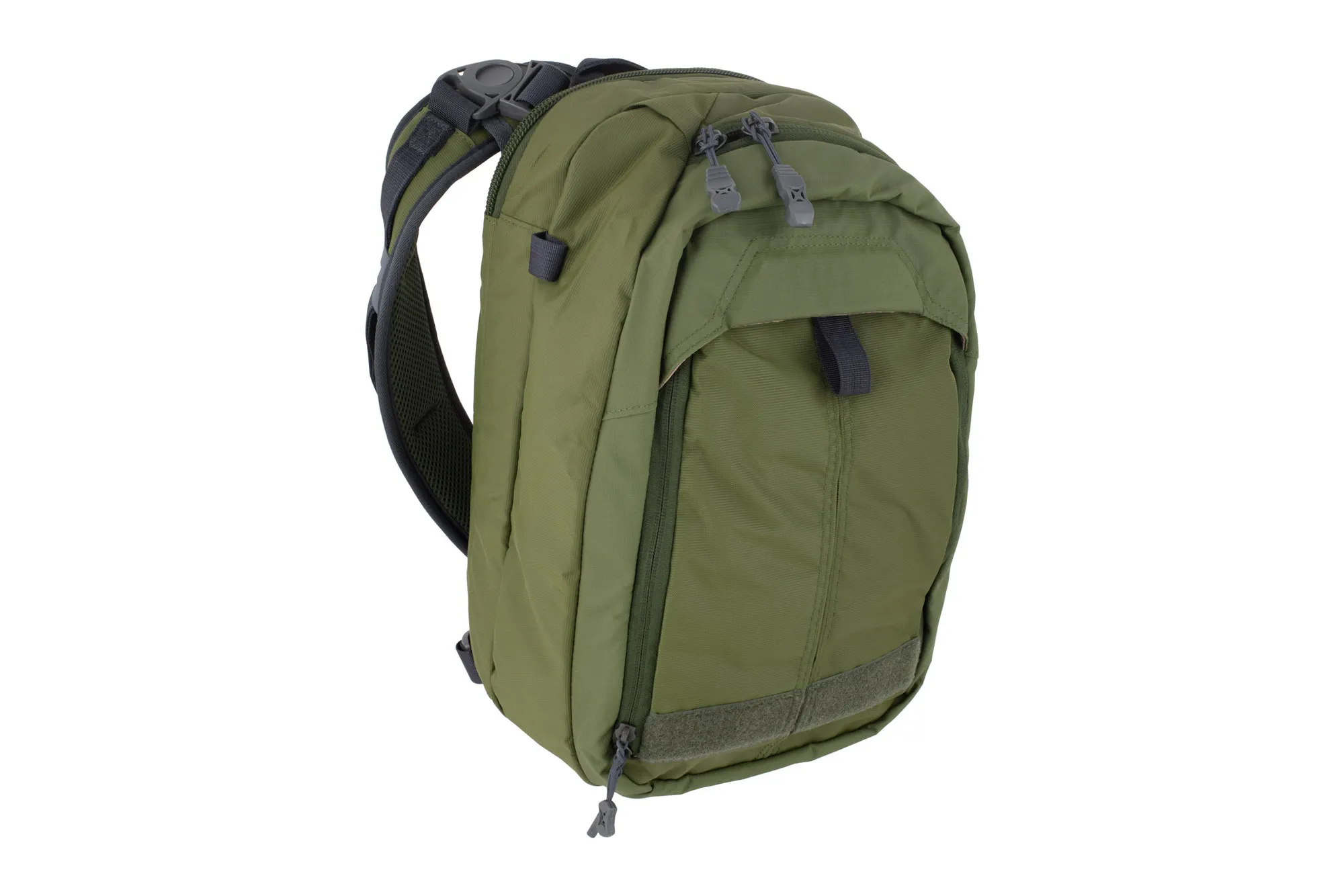 - Convertible front flap stows behind loop-faced MOLLE webbing panel